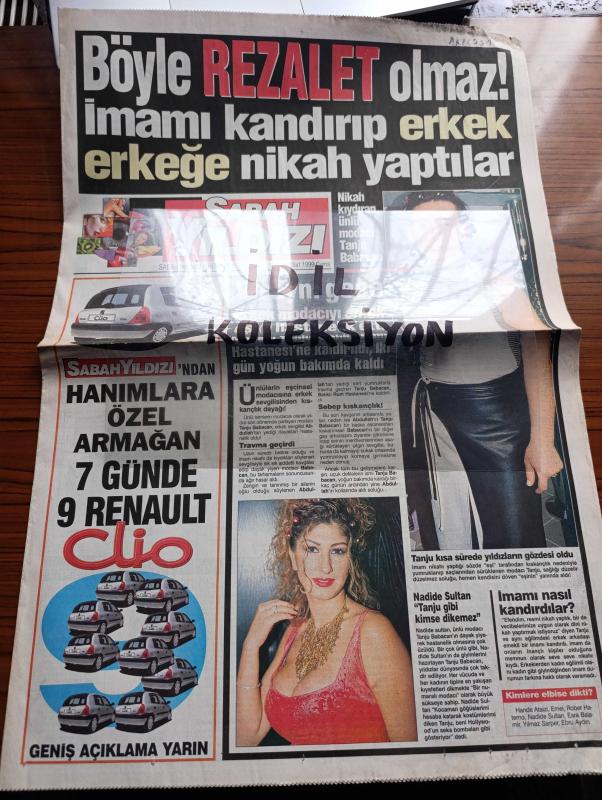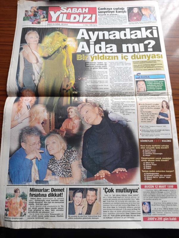 Sabah Yıldızı Gazetesi - Turkish Newspaper - 12 Mart 1999 - böyle rezalet olmaz imamı kandırıp erkek erkeğe nikah yaptılar - nikah kıydıran Ünlü modacı Tanju Babacan aynı gece erkek eşi tarafından hastanelik edildi - Nadide Sultan Tanju Babacan gibi kimse dikemez dedi fotoğraf - yataklar çiçek açacak - sade ama kışkırtıcı Fotoğrafı - güzel makyaj için birkaç altın kural - fındıklı irmik tatlısı tarifi - sese karşı 15 öneri - erken yaşlanmaya ıspanak - İki defa beyin ameliyatı geçiren Yüksel Uzel sahnede fenalaştı Fotoğrafı - iş adamı Ali Bars önceki akşam güzel bir genç kızla zorba tavernada felekten bir gece çaldı Fotoğrafı - sosyeteye özel defile Fotoğrafı - İngilizlerin ünlü dizi oyuncusu Matthew Marsden sevgilisine bebeğini öldürürsen seni tatile götürürüm dedi - ikili yaşamlarını gizleyen kariyer sahibi kızların dünyası - Üstsüz manken Hülya Paksu - Baba evi dizisi - günün filmleri - rüyalar ve yorumları yazan manevi şifa uzmanı Kudret Şandra - Aynadaki Ajda Pekkan mı Fotoğraf adlı eser, Kitap > Süreli Yayınlar > Gazeteler > Türkiye > Genel > Günlük kategorisinde İkinci El olarak satıştadır.