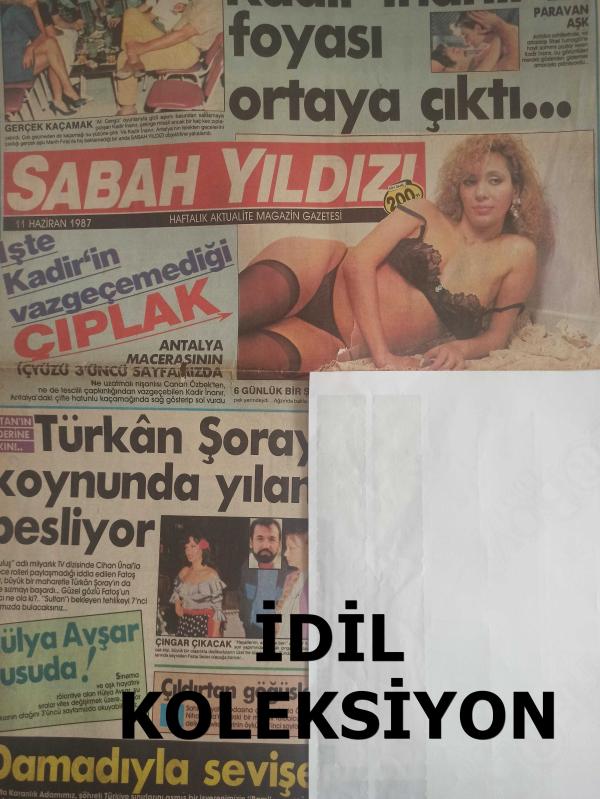 Sabah Yıldızı Haftalık Magazin Gazetesi - 11 Haziran 1987 - Kadir İnanır'ın foyası ortaya çıktı - Paravan Aşk - Sibel Turnagöl - Kadir İnanır - Canan Özbek - Türkan Şoray koynunda yılan besliyor - Atıf Yılmaz - Fatoş Sezer - Çıldıran Göğüsler - Leyla Önder - Nihal Arda - Böylesi, hiç yazılmadı - Beyoğlu'nda fuhuş pazarı nasıl çalışıyor? - ''Beyoğlu'ndaki en büyük kadın satıcıları, otelciler, taksi şoförleri ve kuaförlerdir'' fotoğraf ve haberi - Gazete Tam Değildir Sadece 2 Sayfası Mevcuttur Yıpranma, sararmalar, kupon kesiği ve yırtılmalar zamana bağlı olarak görülebilir