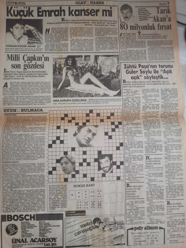 Sabah Yıldızı Haftalık Magazin Gazetesi - 1980 Yılı - Selim Soydan geldi Cihan Nerede - Hülya Koçyiğit - Türkan Şoray - Birinde sevinç diğerinde hüzün vardı - Aydan Şener, sinemacıların parlak tekliflerine dayanamadı - Aydan Şener - Çalıkuşu Yeşilçam'da - Ayyıldız Mayo Reklamı - Küçük Emrah kanser mi - Tarık Akan'a 80 milyonluk fırsat - Zühtü Paşa'nın torunu Güler Soylu ile ''Açık açık'' söyleştik - Milli Çapkın'ın son gözdesi - Süha Özgermi - Oyun Bulmaca fotoğraf ve haberi - Gazete Tam Değildir Sadece 2 Sayfası Mevcuttur Yıpranma, sararmalar, kupon kesiği ve yırtılmalar zamana bağlı olarak görülebilir