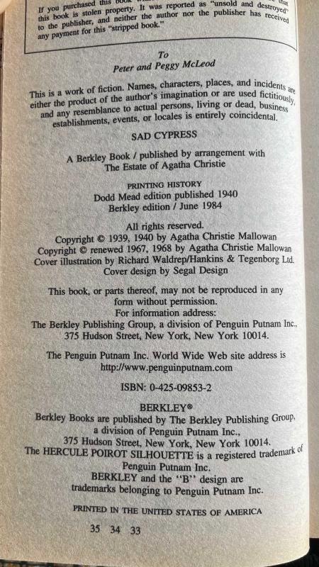 Sad Cypress: A Hercule Poirot Novel - English - Softcover - Agatha Christie - Berkley Books adlı eser, Kitap > Edebiyat, Kurgu > Polisiye, Cinai > Dünya Edebiyatı > Agatha Christie kategorisinde İkinci El olarak satıştadır.