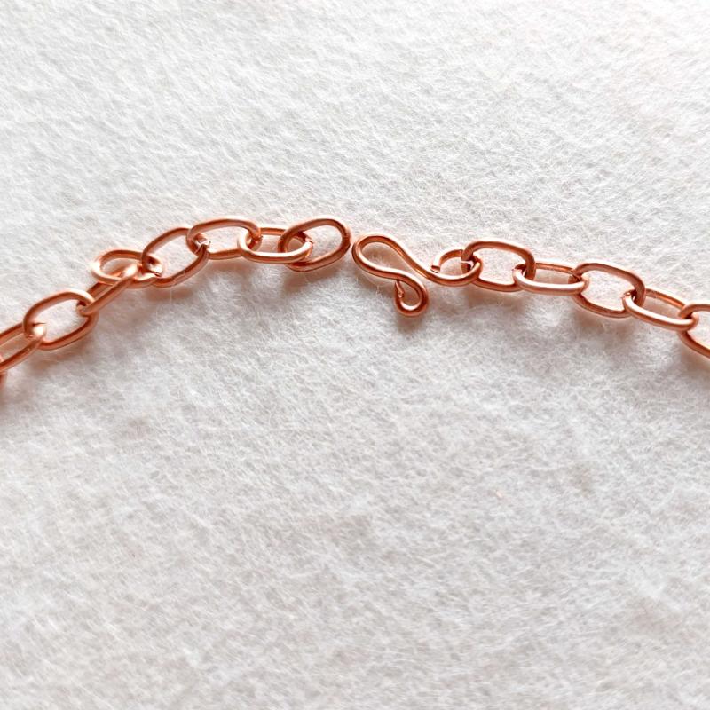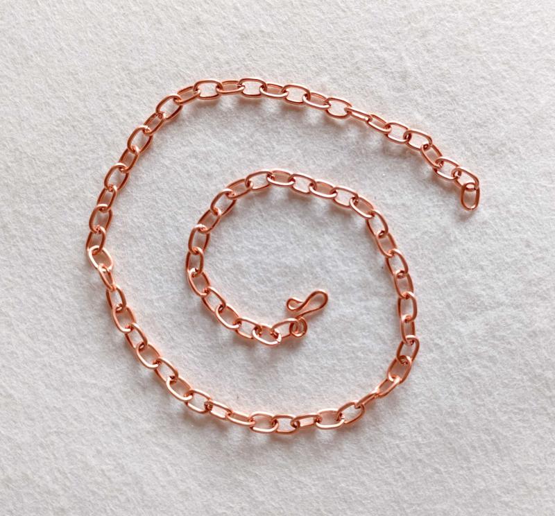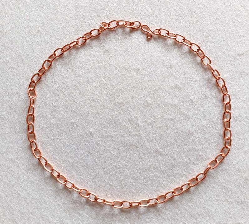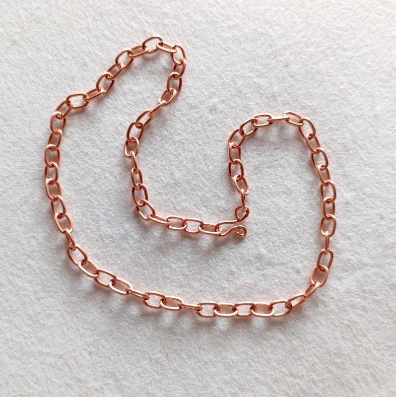 Saf bakır zincir kolye. 50cm ebatında. 7mm genişliğinde.25gr ağırlık,ZNC020 başlıklı antika/koleksiyon objesi Türkiye menşe’lidir. 2000 ve sonrası dönemine aittir.