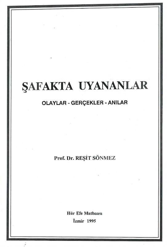Şafakta uyananlar Olaylar-gerçekler-anılar, Reşit Sönmez tarafından kaleme alınmıştır. Kitap 1995 yılında Hür Efe Matbeesı tarafından [İzmir] yayınlanmıştır. 135 sayfadır. Şafakta uyananlar Olaylar-gerçekler-anılar adlı eser Türkçe dilindedir.