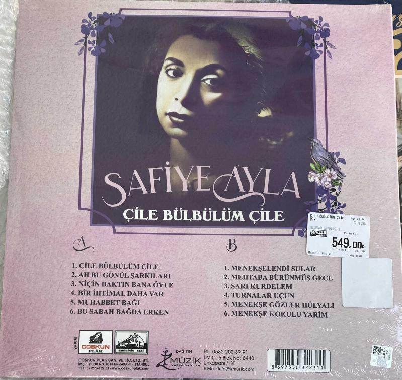 Safiye Ayla Çile Bülbülüm Çile Plak LP SIFIR JELATİNLİ AMBALAJINDADIR başlıklı ürün, Efemera, Müzik, Sinema > Müzik, Plak, Kaset, CD > Plak > Yerli Plaklar > Yerli 33 Devir Plak (33'lük, LP) kategorisi altında Yeni olarak satılmaktadır.
