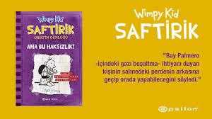 Saftirik Greg'in Günlüğü 5- Ama Bu Haksızlık Yazar: Jeff Kinney Çevirmen: Kenan Özgür Yayınevi: Epsilon Yayınevi - Çocuk Kitapları Dizisi, Saftirik Greg'in Günlüğü 5- Ama Bu Haksızlık Yazar: Jeff Kinney Çevirmen: Kenan Özgür Yayınevi: Epsilon Yayınevi - Çocuk Kitapları Dizisi tarafından kaleme alınmıştır. Kitap 2013 yılında yayınlanmıştır. Satışta olan kitap, yayınevinin 9. baskısıdır. 224 sayfadır. Saftirik Greg'in Günlüğü 5- Ama Bu Haksızlık Yazar: Jeff Kinney Çevirmen: Kenan Özgür Yayınevi: Epsilon Yayınevi - Çocuk Kitapları Dizisi adlı eser Türkçe dilindedir.