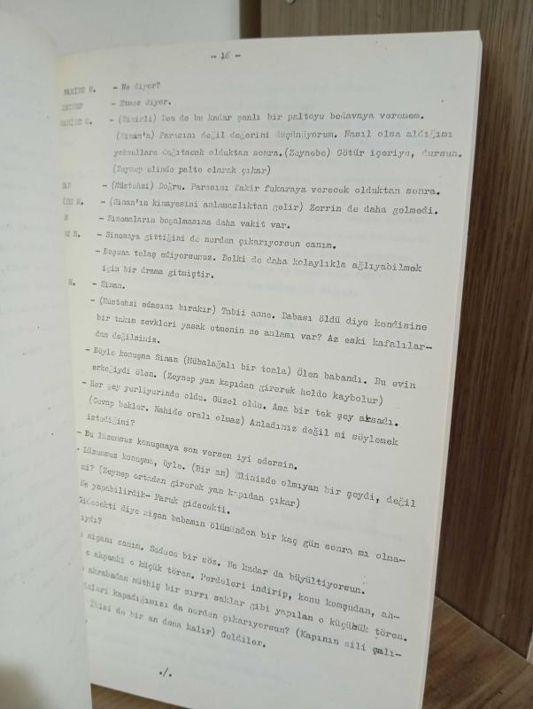 Eser, 1984 yılı Devlet Tiyatroları çalışması için teksir kağıdına daktilo edilerek çoğaltılmış, dönemine ait orijinal sahne metnidir. Sahne teksirleri, matbu kitapların aksine oyuncular için alınmış sahne notlarını, giriş-çıkış işaretlerini ve bazen oyunun o dönemki sahnelenişine göre yapılmış kısaltmaları içerebilir. Sayfaları eksiksiz ve okunur haldedir. Herhangi bir kurum ya da şahıs mührü / imzası yoktur.