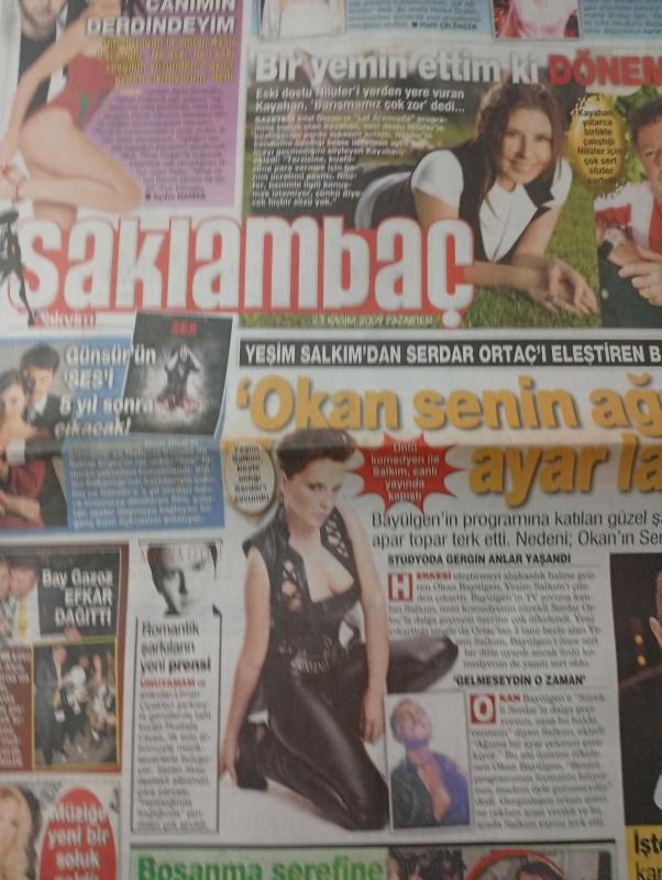 Saklambaç Doğum günü Gazetesi-23 kasım 2009-Nihat Doğan-Aysu baceoğlu-melike Öcalan-Işın Karaca-Nilüfer-Bilal Özcan-Kayahan-ümit Önal-Mehmet Gül-bay gazoz efkar dağıttı-Nuri alço-sadegül-gamsız meyhane-Seren Serengil-Ece erken-Okan Bayülgen-Serdar Ortaç-yeşim salkım-yaşlanmaya karşı durum-Okur mutfağı-köfteli makarna tarifi-binnur Sorma Geçili astroloji-şüphelerinizi gidermek için bir uzmana başvurmalısınız-Gökhan Ordu cinsel yaşam-bulmaca-Hayko Cepkin-Emrah-kakao bulmaca-mozaik bulmaca-sözcük yerleştirme-tünel kare bulmaca-sayı yerleştirmece-sayı-sözcük hava-harflerle oynayalım-Jale inci sözlüsüden övünerek bahsediyor-Çelebi Çiçek ile tarot kartları-duygu ve kubko meleko--ramazan kaya-Paşa aslanoğlu-Nilgün tahmaz-Mehmet Ali Önel-Ezel dizisi-Gürkan zengin-nükhet duru-sayfa sayısı sekizdir adlı eser Türkçe dilindedir.