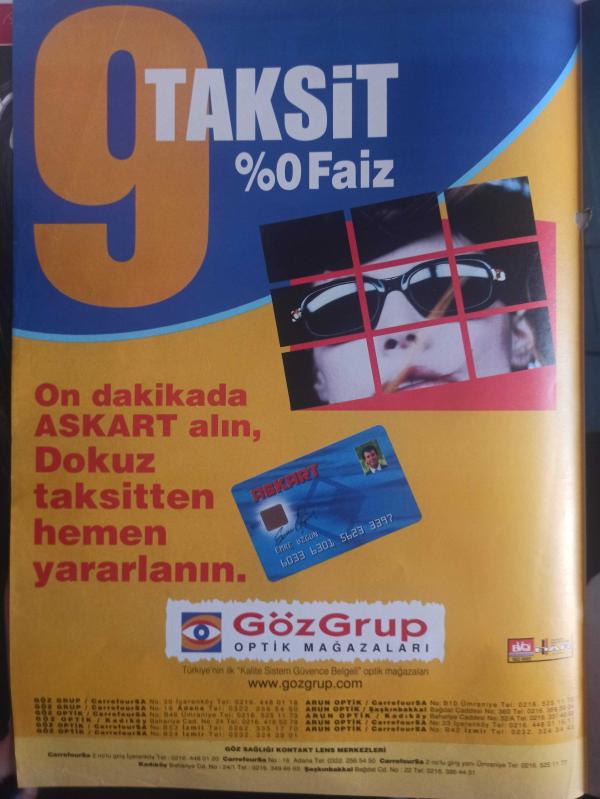 Şamdan Haftalık Aktüalite Sinema Tiyatro Müzik ve Magazin Dergisi - 10 Aralık 2000 - Seren Serengil - Göz Grup Mağazaları Reklamı - Aromel Deodorant Reklamı - Tatiana - Yaşar - Önce İş Sonra Yaşar fotoğraf ve haberi - Dergi Tam Değildir Sadece 4 Sayfası Mevcuttur Yıpranma, sararmalar, kupon kesiği ve yırtılmalar zamana bağlı olarak görülebilir