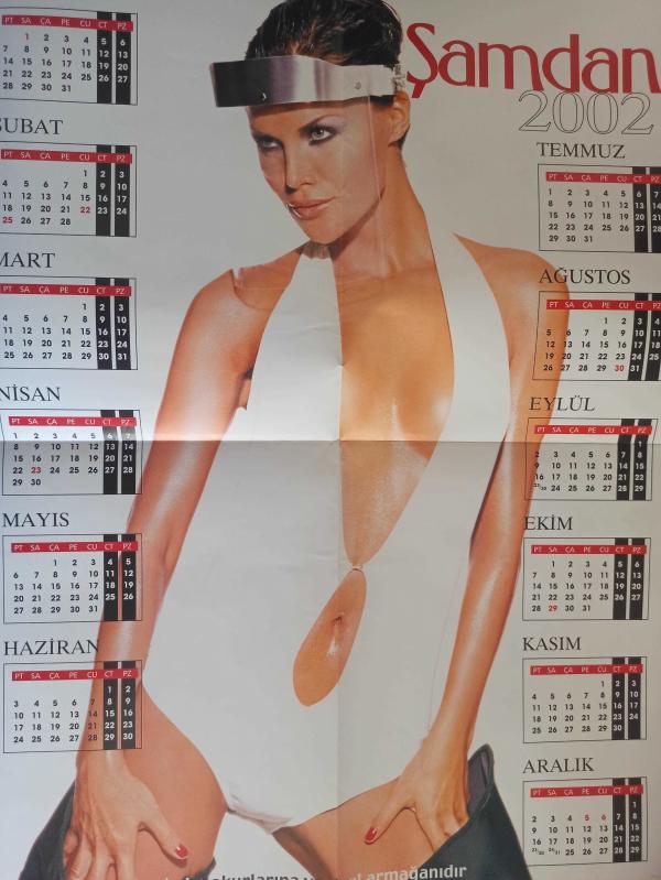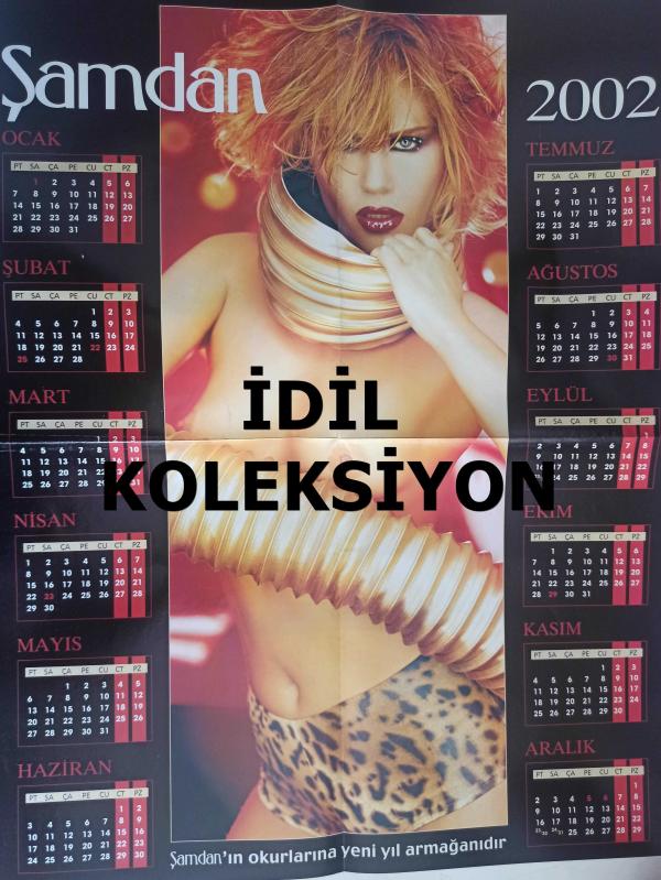 Şamdan Haftalık Aktüalite Sinema Tiyatro Müzik ve Magazin Dergisi - Ebru Şallı Fotoğraflı 2002 Yılı Takvimi Posteri - 48x60cm Boyutunda - Tek Sayfa Arkalı Önlüdür Yıpranma, sararmalar, kupon kesiği ve yırtılmalar zamana bağlı olarak görülebilir
