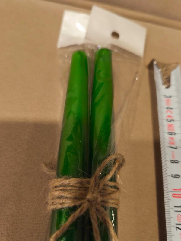 El yapımı birinci kalite renkli çift mum. Paketinde sıfır. Yeşil