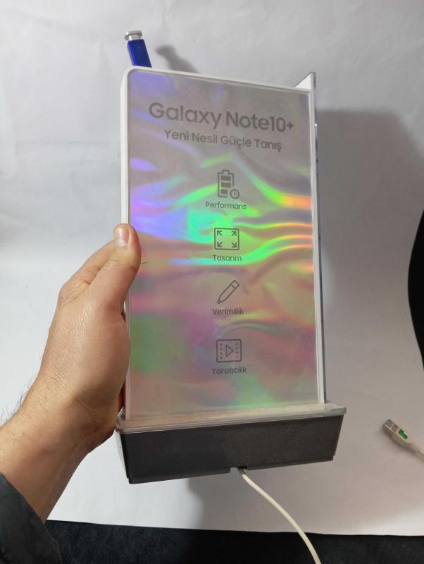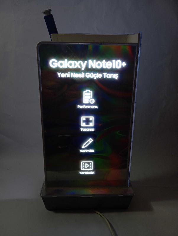 Samsung Galaxy Note10+ isikli tabela. reklam tabelası 32x17 cm ışıklı reklam tabelası. çift taraflı masa üstü için. iyi durumda. ışık hariç bir fonksiyonu yok