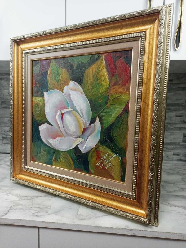 Sizlere muazzam ahşap çerçevesinde Nurten Demiroğlu (1932 - ) imzalı MANOLYA çiçeği tasvirli 59*59 ölçülerinde Sanatçı İmzalı Yağlı Boya Tablo sunuyoruz.. Sanatçı Bilgisi: İstanbul Üniversitesi eski rektörü ve Florance Nightingle Hastanesi'nin kurucusu Prof. Dr. Cem'i Demiroğlu'nun eşi Nurten Demiroğlu, sergilediği resimlerin geliriyle kalp hastası çocuklara umut oluyor. BOLU ANTİK MAĞAZAMIZDAN SİZLERE SUNDUĞUMUZ DİĞER İLANLARI PROFİLMİZDEN GÖREBİLİRSİNİZ.