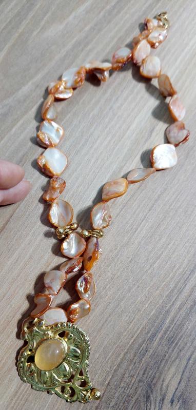 Sanatçı Tasarımı, Kök Taşlar ve Sedeften İmal Edilmiş Çok Şık Tasarım Kolye 32 CM UZUNLUK
