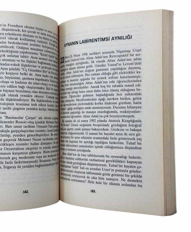 Özgün karton kapağında, birkaç sayfasında okuyucusu tarafından altı çizili cümle bulunmakta, harici çok temiz durumda, 13.5 x 19.5 cm, 297 sayfa. ''Bu kitapta siyasi ve sosyolojik olan yazılarla birlikte sergilerin yazıları yan yana, arka arkaya, içiçe olarak sunulmuştur. Bu birliktelik beraberinde dayanışmayı, geçişkenliği ve eklemlenmeyi vücuda getirmektedir. Bir de sanatın bir adı olarak adlandırdığım sosyolojiyi. Sanat sosyolojisi olmayan; ama kendisini bir sanat türü olarak sunan sosyoloji. Kavramlarıyla, araştırmalarıyla hep sanat olarak kendisini gösteren sosyoloji ve sanat arasındaki ara alan; ortada olma hali kendi kendine, farkettirmeden; zaten yapılırcasına, hissettirmeyen bir adın izlerini sanat üzerine yazmaktadır. Okumanın bazen mümkün olduğu silik ve izbe bir sosyoloji: Sanatın Adı.''