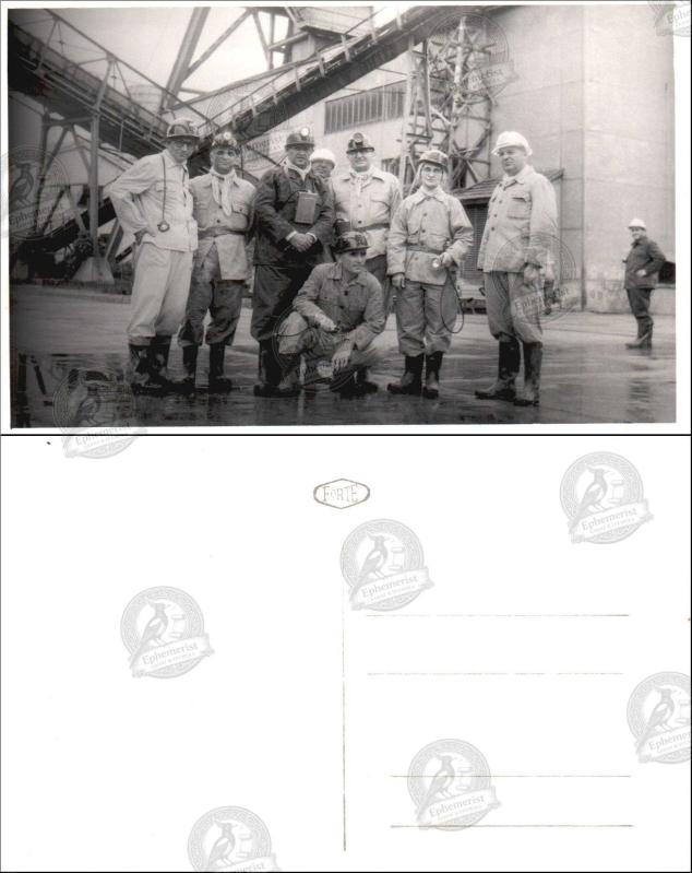 Sanayi Tesisi, Fotoğraf, 1950’ler: Endüstriyel yapılar önünde baretli ve iş kıyafetli erkeklerden oluşan işçi grubu, tesis sahasında toplu poz., 3 gün önce satışa sunulmuştur.
