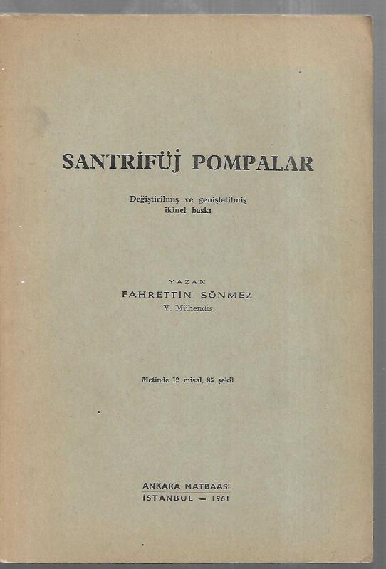 Santrifüj Pompalar, FAHRETTİN SÖNMEZ tarafından kaleme alınmıştır. Kitap 1961 yılında ANKARA MATBAASI tarafından [İstanbul] yayınlanmıştır. 130 sayfadır. Santrifüj Pompalar adlı eser Türkçe dilindedir.