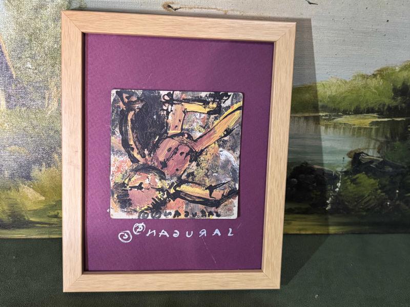 Saragan imzalı özgün mini çalışma 10x10 ebatında - çerçeveli 22 cm x 17 cm