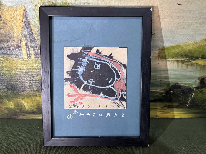 Saragan imzalı özgün mini çalışma 10x10 ebatında - çerçeveli 22 cm x 17 cm