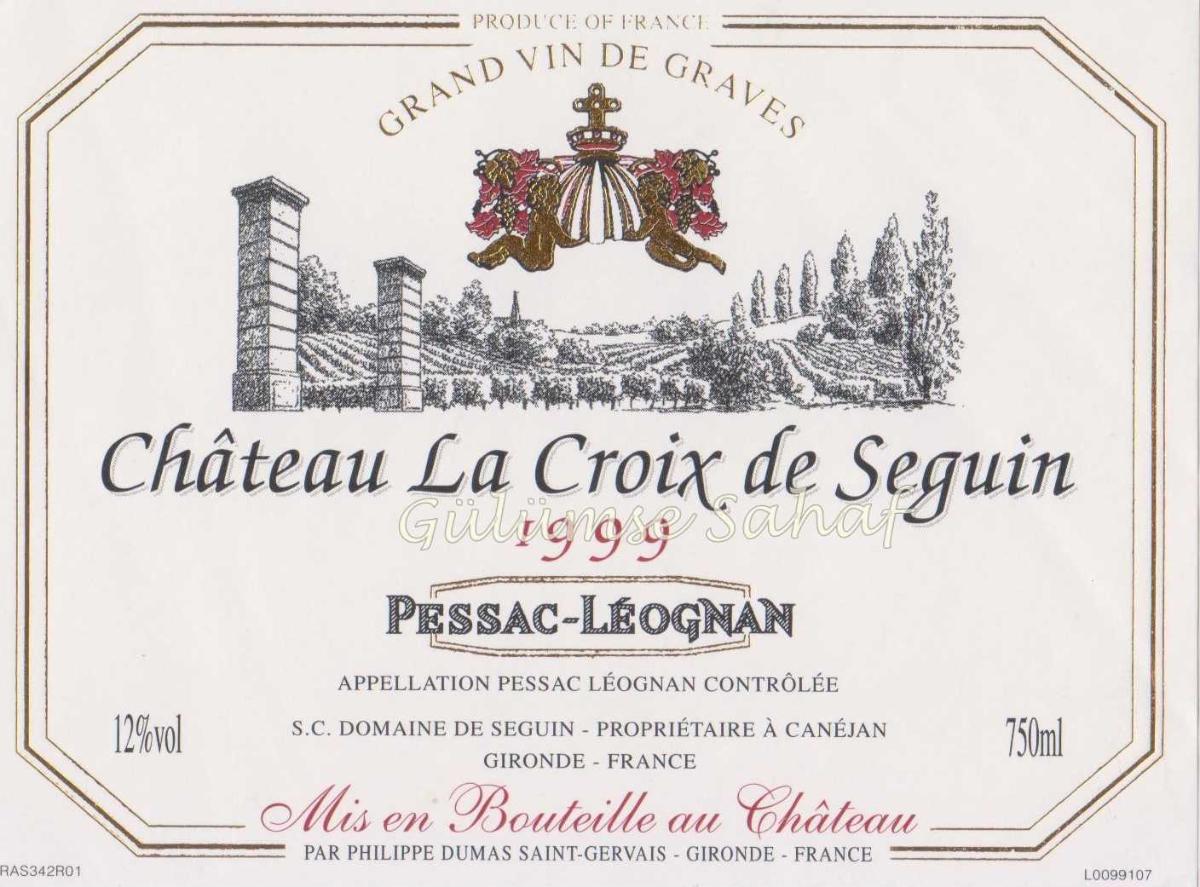 Şarap Etiketi: Chateau La Croix de Seguin, Pessac Leognan, 1999, en son 5 gün önce güncellenmiştir.
