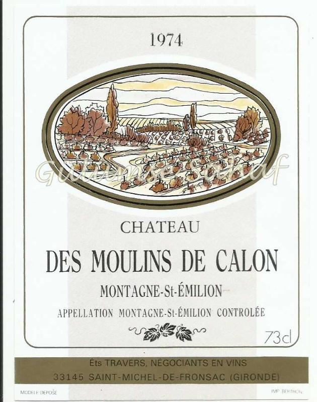 Şarap Etiketi: Des Moulins De Calon, 1974