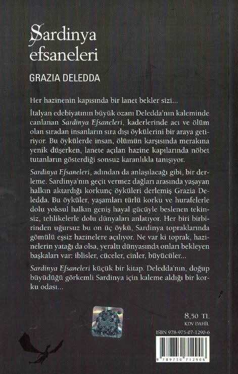 Sardinya Efsaneleri, Grazia Deledda tarafından kaleme alınmıştır. Kitap 2011 yılında Can Yayınları tarafından yayınlanmıştır. 102 sayfadır. Sardinya Efsaneleri adlı eser Türkçe dilindedir.