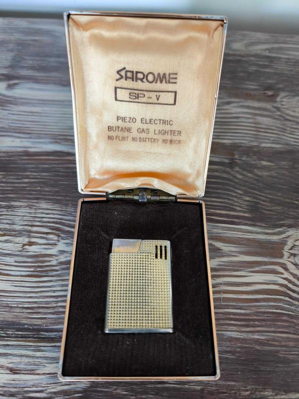 Sarome Altın Kaplama Çakmak. Orjinal Kutusunda başlıklı antika/koleksiyon objesi Avrupa menşe’lidir. 1940 sonrası dönemine aittir.