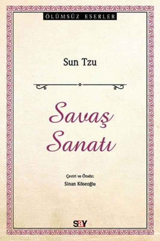 Çin siyasal düşüncesi nasıl Konfüçyüs ismiyle özdeşleşmişse Çin savaş sanatı da Sun Tzu ismiyle özdeşleşmiştir.; MÖ 4. yüzyılda yaşadığı düşünülen Sun Tzu, Savaş Sanatı ’nda savaşı, stratejisiyle, taktiğiyle, muhaberesiyle, ikmaliyle, casusluk ve istihbarat faaliyetleriyle, kısacası tüm yönleriyle ele alır.; Altını çizdiği ilkelerin hayata geçirilmesinin pek çok komutanı muzaffer kıldığı, geçirilmemesinin ise pek çoğunu mağlubiyete sürüklediği ileri sürülür.; Dünyanın tüm kışlalarının kütüphanelerinde mutlaka bulundurulan bu kitap liderlik sanatını icra eden ve rakipleriyle mücadele etmek zorunda olan herkesin mutlaka okuması gereken bir eserdir.; Siparişleriniz, kargo sürecinde zarar görmemesi için dikkatle paketlenerek gönderilir.; Dilerseniz hediye paketi seçeneğinden faydalanabilirsiniz.; Ayrıca sevdiklerinize özel bir sürpriz yapmak isteyen müşterilerimiz için kişiye özel hediye notu hazırlanabilmektedir.; Hediye paketi ve not taleplerinizi sipariş esnasında belirtmeniz yeterlidir.; Ürün görsellerinde ve açıklama kısmında belirtilen tüm ürünler eksiksiz ve belirtilen şekilde gönderilmektedir.; Müşteri memnuniyeti önceliğimizdir.; Ürünle ilgili her türlü soru, talep ve destek için Ürün Sorusu bölümünden bizimle iletişime geçebilirsiniz.