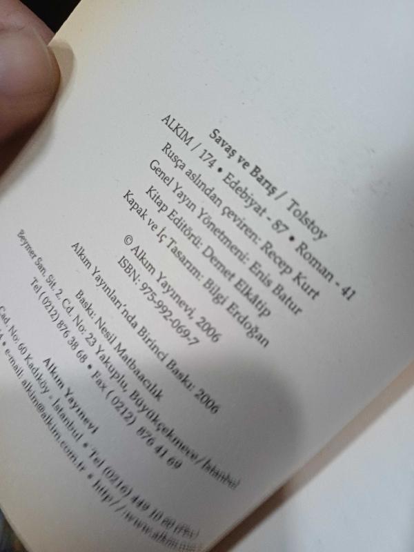 Savaş ve Barış adlı eser, Kitap > Edebiyat, Kurgu > Roman > Dünya Edebiyatı kategorisinde İkinci El olarak satıştadır.