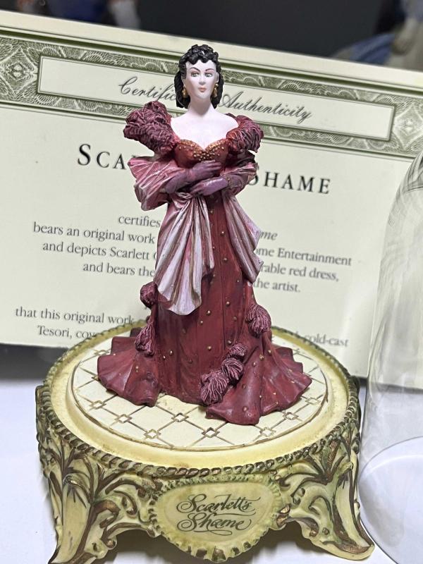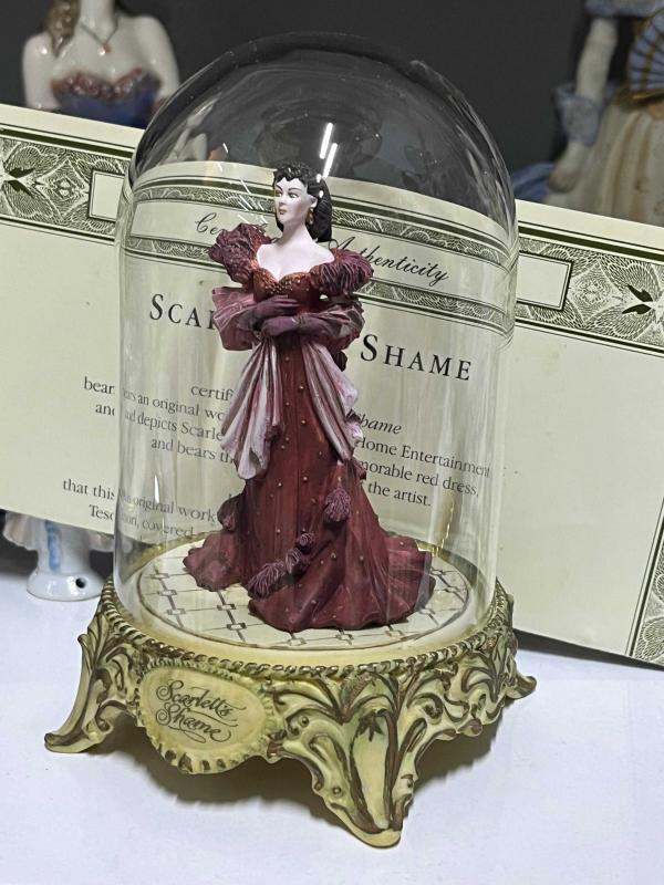 Vintage 1993 Scarlett's Shame heykelciği Rüzgar Gibi Geçti cam fanus içinde sertifikalı kusursuz 14 cm