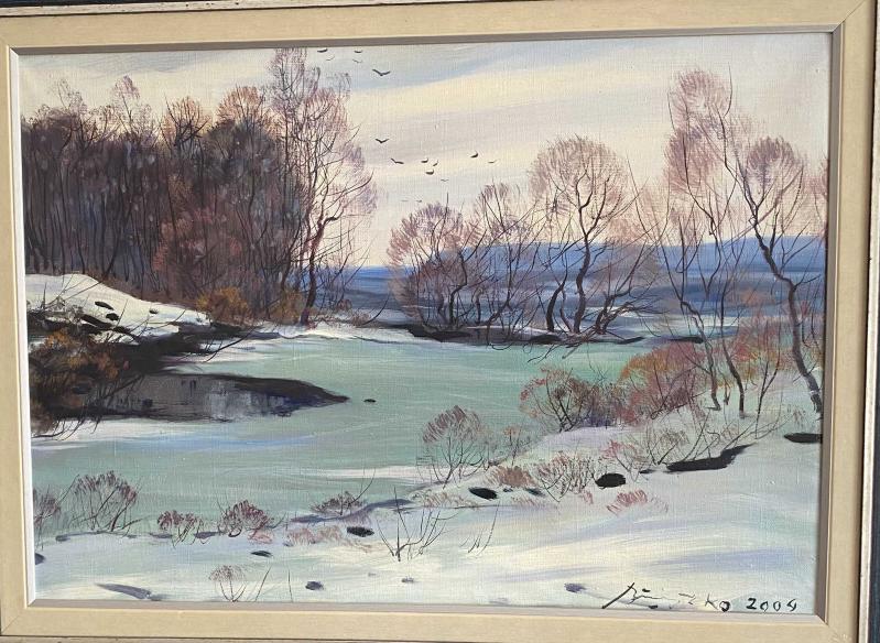 Schmitko imzalı, Kış Temalı Peyzaj, Tuval Üzeri Yağlıboya, 50 x 70 cm, 2004 tarihli. başlıklı antika/koleksiyon objesi Rusya menşe’lidir. 2000 ve sonrası dönemine aittir.