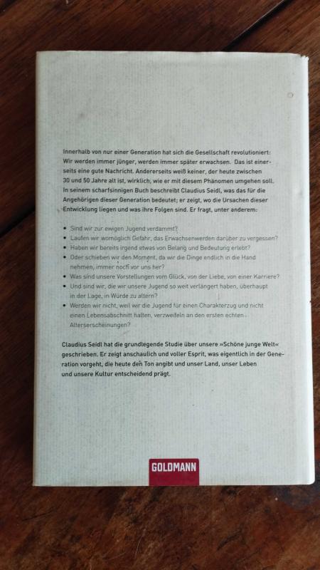 Schöne junge Welt: Warum wir nicht mehr älter werden, Claudius Seidl tarafından kaleme alınmıştır. Kitap 2005 yılında Goldmann Verlag (HC) tarafından yayınlanmıştır. 190 sayfadır. Schöne junge Welt: Warum wir nicht mehr älter werden adlı eser Almanca dilindedir.