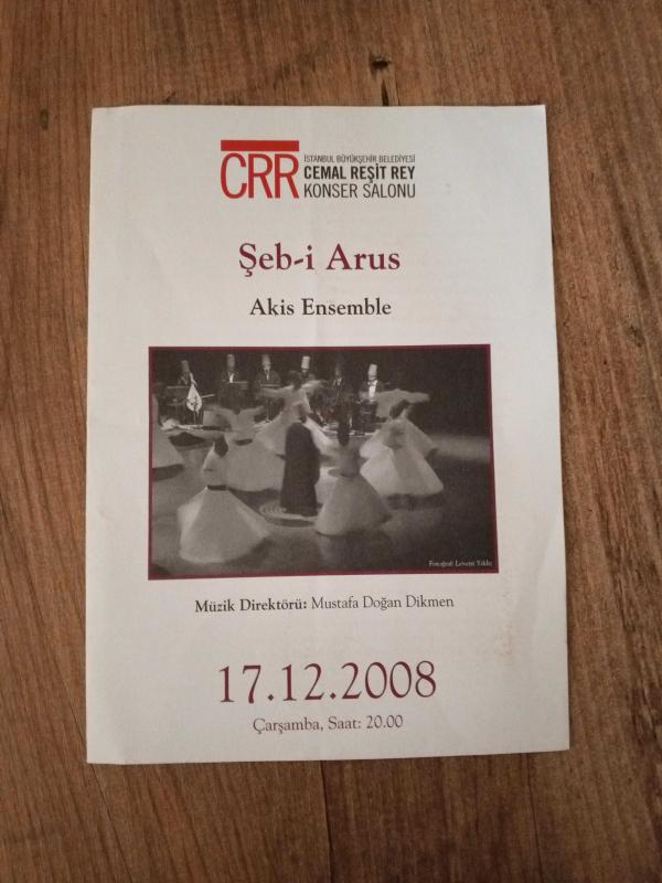 Kitap 2008 yılında Cemal Reşit Rey Spor Salonu tarafından [İstanbul] yayınlanmıştır. 4 sayfadır. Şeb-i Arus. Akis Ensemble. 17.12.2008 Kitapçığı adlı eser Türkçe dilindedir.