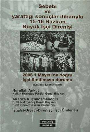 Sebebi ve Yarattığı Sonuçlar İtibarıyla 15-16 Haziran Büyük İşçi Direnişi: 2006 1 Mayısı'na Doğru İşçi Sınıfımızın Durumu, Nurullah Ankut tarafından kaleme alınmıştır. Kitap 2011 yılında DERLENİŞ YAYINLARI tarafından [İstanbul] 9789757346531 ISBN kodu ile yayınlanmıştır. Satışta olan kitap, yayınevinin 1. baskısıdır. 224 sayfadır. Sayfa bilgisi 2. Hamur olarak belirtilmiştir. Sebebi ve Yarattığı Sonuçlar İtibarıyla 15-16 Haziran Büyük İşçi Direnişi: 2006 1 Mayısı'na Doğru İşçi Sınıfımızın Durumu adlı eser Türkçe dilindedir.