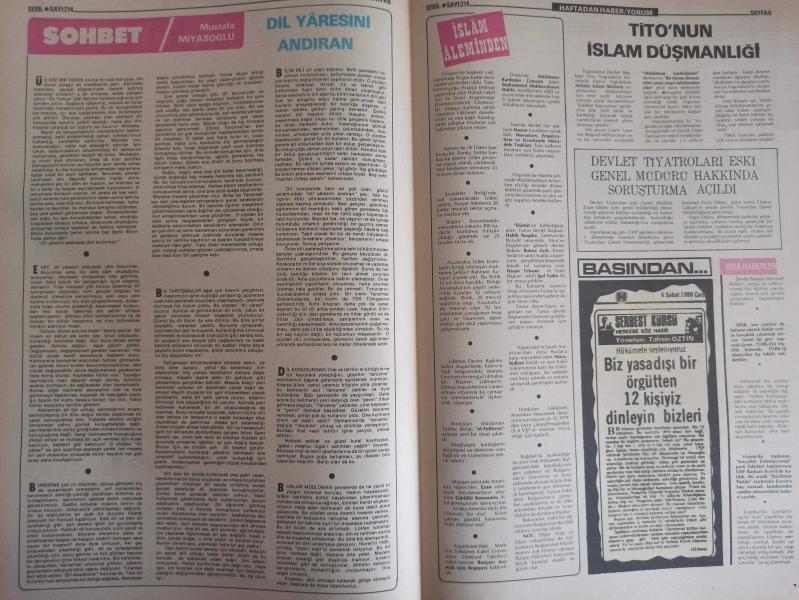 Sebil Haftalık Siyasi, Edebi, Tarihi, İlmi Gazetesi - 11-17 Şubat 1980 - Sayı:214 - Müslümanlar Milliyetçiler ve Vatanseverler Tek Safta - Davanın Ruhu Feda Edilemez? - MSP-CHP Koalisyonu Mümkün Değildir - Gazetemizin Son Durumu - Farrah, Kocasını Öldürürse Affolur - İslami Kısasta Ölümlere Ölüm Katmak mı, Yoksa Gerçek Hayat mı Vardır? - Bediüzzaman Said Nursi ve Türkler - Ertuğrul Düzdağ - Sanat Üzerine Notlar - Talık Yazısı - Aydın Baki Mutlu - Büyük Filozoflar ve Günün Problemleri - Hicret ve Edebiyat - Kalbimin Sesine Ayarlı Ayaklarım - Hasan Akay - Sanatın Önemi Üzerine- Hasan Fehmi Ulus - Mansur Eminoğlu - Mustafa Miyasoğlu - Dil Yaresini Andıran - İslam Aleminden - Tito'nun İslam Düşmanlığı - Biz Yasadışı Bir Örgütten 12 Kişiyiz Dinleyin Bizleri - Ehl-i Sünnet İnanışının Değişmez Metinleri - Dini Suallere Cevaplar - Ahmet Muhtar Büyükçınar - Hac İntibaları - Mutlu Bir Yuva İçin - Gevezeye Cevap - Keloğlan Sihirli Tüy - İki İhtidanın Hikayesi - Brecht'in Bir Piyesi ve Düşünceler - Okuyucu Postası - Suriye'de Çalkantılar ve Tedhiş fotoğraf ve haberi - Tam Takım Gazete Yıpranma, sararmalar, kupon kesiği ve yırtılmalar zamana bağlı olarak görülebilir