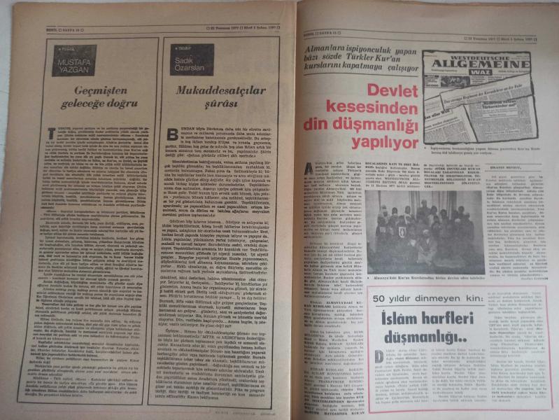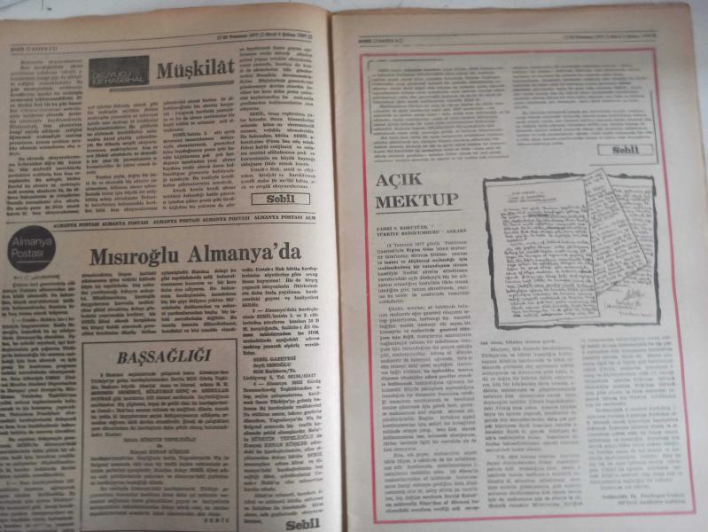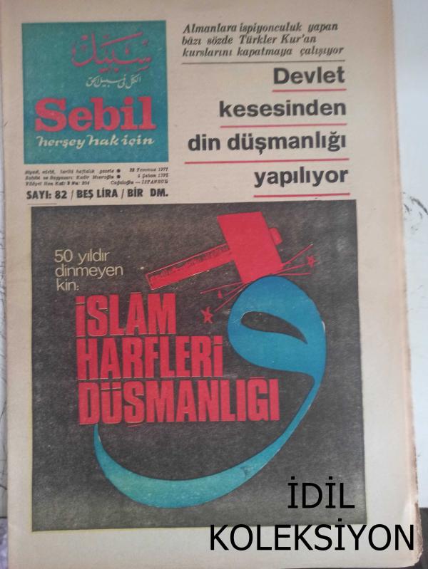 Sebil Haftalık Siyasi, Edebi, Tarihi, İlmi Gazetesi - 22 Temmuz 1977 - Sayı:82 - Devlet Kesesinden Diş Düşmanlığı Yapılıyor - İslam Harfleri Düşmanlığı - Okuyucu ile Hasbihal - Mısıroğlu Almanya'da - Baş Sağlığı - Açık Mektup - Ali Şükrü Bey - Kadir Mısıroğlu - İsmet Bey'e Göre Bursa'nın Sukutu Meselesinde Mesul Kimse Yoktur - Ahmed Selami - Şeriat Allah'ın Kanunudur, İslam'dır - Bomba Elde Patlayabilir - Çorbacı - Said Şamil- Filistin Davası ve Yahudiler - Şeriata Göre Ne İse O Olacak - Ecevit, Türkeş'e 10 Bakanlık Teklif Etti - Mustafa Yazgan - Geçmişten Geleceğe Doğru - Sadık Özarslan - Mukaddesatçılar Şurası - Devlet Kesesinden Din Düşmanlığı Yapılıyor - 50 Yıldır Dinmeyen Kin: İslam Harfleri Düşmanlığı - Milli Görüş Meseleye El Koydu! - İslam Yazısına Dair- Kitap Dünyası - Kırıkkanat - Hükümet At Meydanı Değildir - Ki Her Gelen Tozuta! - Askeri Savcılık Halil Tunç Hakkında Soruşturma Açtı fotoğraf ve haberi - Tam Takım Gazete Yıpranma, sararmalar, kupon kesiği ve yırtılmalar zamana bağlı olarak görülebilir