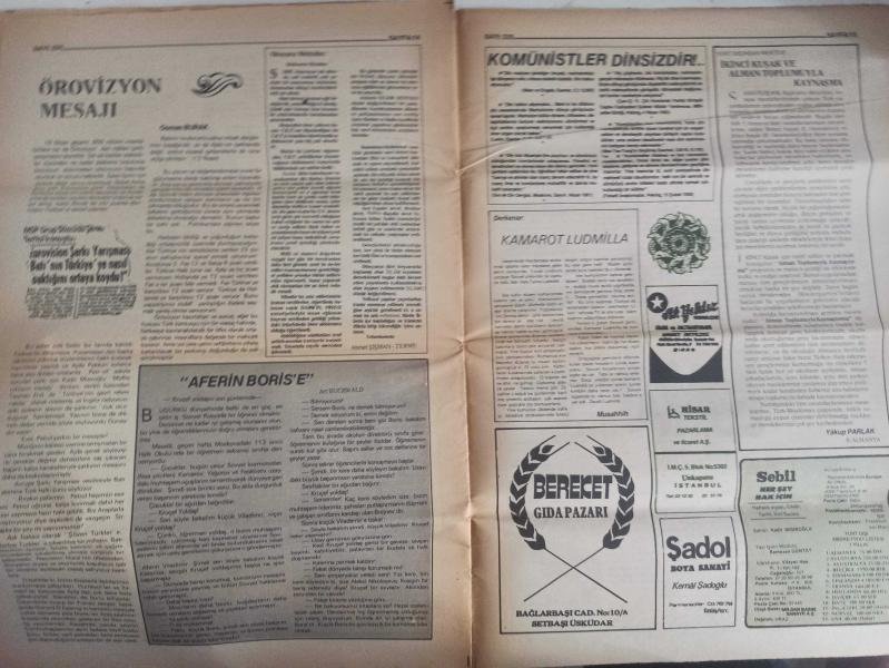 Sebil Haftalık Siyasi, Edebi, Tarihi, İlmi Gazetesi - 25 Nisan - 4 Mayıs 1980 - Sayı:225 - Türkiye'de Tek Ucuz Şey İnsan Hayatıdır! - Okuyucu Postası - Ermeni Meselesi'ndeki Yeni Kıpırdanışların Sebepleri - Kadir Mısıroğlu - Güneş Batıdan Doğuyor - Batı'da Şuurlanan Eski Müslümanlar - Ahmet Paşa'nın Bir Gazeli - Mustafa Miyasoğlu - Müslümanlara Kimler ''Başkan'' Olabilir - Talha Emiroğlu - Faiz - Bir İbret Levhası - Ermeniler Bizi Arkadan Hançerlemeye Kalkıştıklarını Unutuyorlar - Dava, Gayret ve Rikkat İster - İbrahim Resuloğlu - Dini Suallere Cevaplar - Salyangoz Yenilir mi? - Ahmed Muhtar Büyükçınar - Bayezid-i Veli Han Türbesinde - Mine Alpay - Kadınlara Hitab - İmtihan - Örovizyon Mesajı - Komünistler Dinsizdir! - Hiç Olmazsa Cuma Günleri Camiden İçeriye Ayak Atan Bir Reisicumhur - Muhsin Batur - Saadettin Bilgiç - Necmettin Erbakan fotoğraf ve haberi - Tam Takım Gazete adlı eser, Kitap > Süreli Yayınlar > Gazeteler > Türkiye > Genel > Haftalık kategorisinde İkinci El olarak satıştadır.