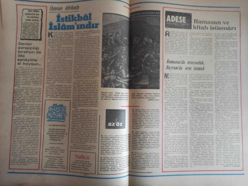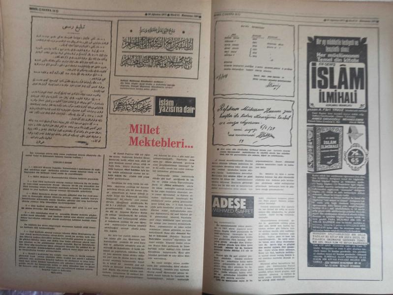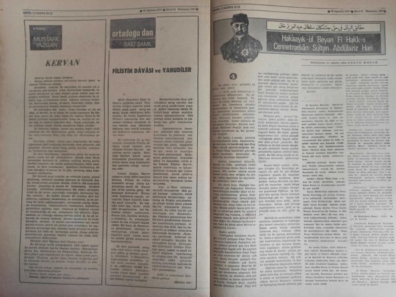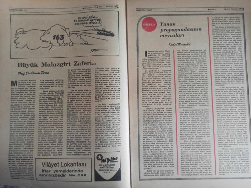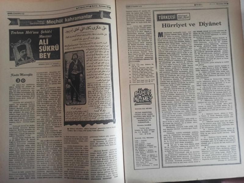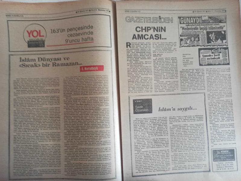 Sebil Haftalık Siyasi, Edebi, Tarihi, İlmi Gazetesi - 26 Ağustos 1977 - Sayı:87 - Devlet Şarapçılığı Bıraksın da İlaç Sanayisine El Koysun - Büyük Malazgirt Zaferi - Osman Turan - Yunan Propagandasının Meyvaları - Kadir Mısıroğlu - Ali Şükrü Bey - Hürriyet ve Diyanet - Ahmed Selami - İslam Dünyası ve Sıcak Bir Ramazan - Gazetelerden CHP'nin Amcası - İslam'a Saygılı - Sadık Özarslan - İstikbal İslam'ındır - Ramazan ve Kitap İstismarı - Mehmed Saffet - Kervan - Mustafa Yazgan - Said Şamil - Filistin Davası ve Yahudiler - Sultan Abdülaziz Han - Yaşar Koçak - Paşakapısında Bir İftar - Millet Mektepleri - Aranıyor Kimse Yok mu? fotoğraf ve haberi - Tam Takım Gazete Yıpranma, sararmalar, kupon kesiği ve yırtılmalar zamana bağlı olarak görülebilir