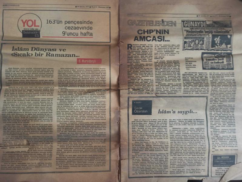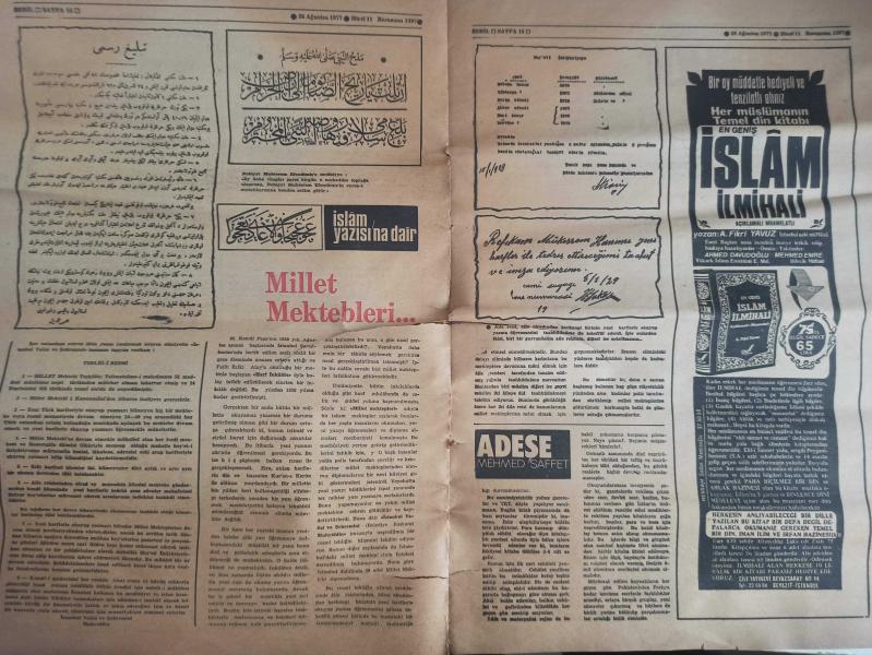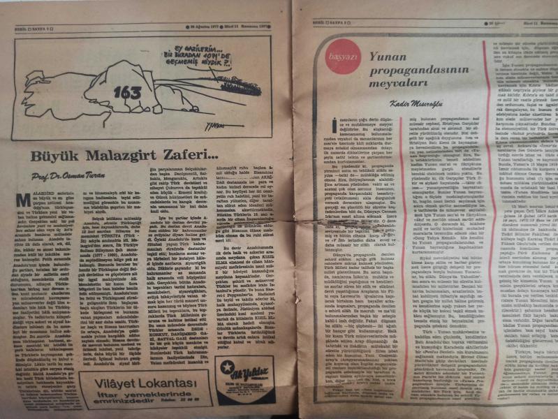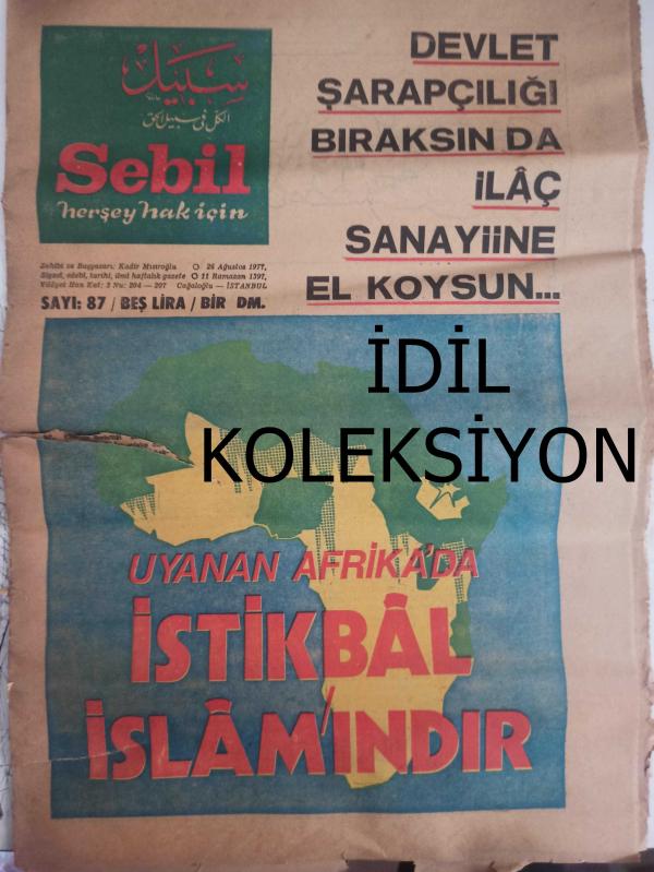 Sebil Haftalık Siyasi, Edebi, Tarihi, İlmi Gazetesi - 26 Ağustos 1977 - Sayı:87 - Devlet Şarapçılığı Bıraksın da İlaç Sanayisine El Koysun - Büyük Malazgirt Zaferi - Osman Turan - Yunan Propagandasının Meyvaları - Kadir Mısıroğlu - Ali Şükrü Bey - Hürriyet ve Diyanet - Ahmed Selami - İslam Dünyası ve Sıcak Bir Ramazan - Gazetelerden CHP'nin Amcası - İslam'a Saygılı - Sadık Özarslan - İstikbal İslam'ındır - Ramazan ve Kitap İstismarı - Mehmed Saffet - Kervan - Mustafa Yazgan - Said Şamil - Filistin Davası ve Yahudiler - Sultan Abdülaziz Han - Yaşar Koçak - Paşakapısında Bir İftar - Millet Mektepleri - Aranıyor Kimse Yok mu? fotoğraf ve haberi - Tam Takım Gazete Yıpranma, sararmalar, kupon kesiği ve yırtılmalar zamana bağlı olarak görülebilir