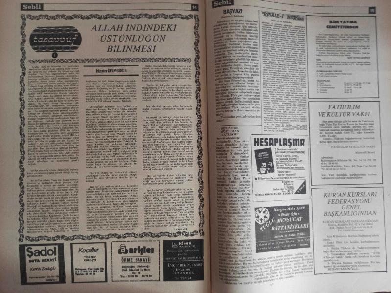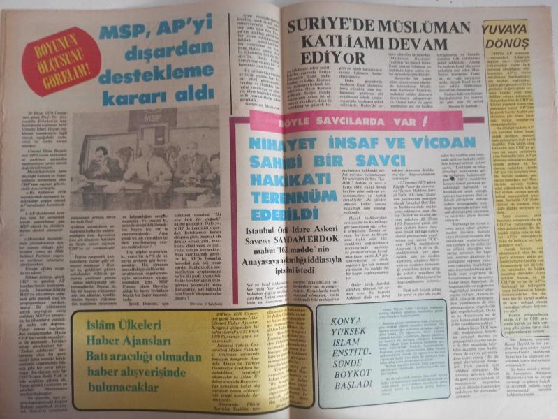 Sebil Haftalık Siyasi, Edebi, Tarihi, İlmi Gazetesi - 29 Ekim 1979 - Sayı:199 - AP İktidar Yolunda - Okuyucu Postası - Kadir Mısıroğlu - Yunan Propagandası - İktisad - Enflasyon - Yılmaz Şener - İslam Ülkeleri - Bizden Korkanlar - Bu Gençlikle - Sadık Albayrak - Modern İktisat Ve İslam - Necdet Şensoy - Talha Emiroğlu - Karma Eğitimin Hedefi İslami Değerleri Yıkmaktır - Suriye'de Müslüman Katliamı Devam Ediyor - Nihayet İnsaf ve Vicdan Sahibi Bir Savcı Hakikatı Terennüm Edebildi - Miracın Semeratı ve Faydası Nedir? - Hakkı Bulmak, Haklının Yanında Olmak - Milli Eğitim ve Anarşi - Abdülhalim Polatoğlu - Kadın Hakları - Mücahideler - Kutublarda Namaz - Esma-ül Hüsna - Hadislerin Işığında - Allah İndindeki Üstünlüğün Bilinmesi - İskender Evrenosoğlu - Hanımıyla Birlikte İslam'ı Seçen Alman Gazetemizi Ziyaret Etti - Muhtedi Ömer Abdülaziz fotoğraf ve haberi - Tam Takım Gazete Yıpranma, sararmalar, kupon kesiği ve yırtılmalar zamana bağlı olarak görülebilir