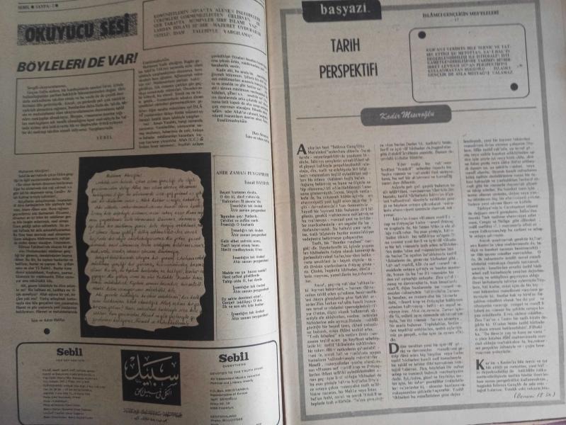 Sebil Haftalık Siyasi, Edebi, Tarihi, İlmi Gazetesi - 29 Ocak 1979 - Sayı:161 - Bu Ne Rezalet Süt Kardeşler Evlendirilmek İsteniyor - Rehin Lekesi Saygınlık Edebiyatının da İflasıdır - Okuyucu Sesi - Böyleleri de Var! - Tarih Perspektifi - Kadir Mısıroğlu - Yakın Tarihimizde Meçhul Kahramanlar - Kur'an Pınarı - Şeytan Azapta Gerek - Mustafa Yazgan - 19. Asrın Yüzkarası - Sedad Zeki Örs - Müslümanda Vahdet Şuurunun Teşekkülü - İngiliz Casusu Lawrence - İslam'ın İstediği Genç Nasıl Olmalıdır? - Hadislerin Işığında Günümüz - Onbirler Gizli Bir Toplantı Yaptılar - Bu ne Rezalet - Komünizm'in Hedefi - Muhammed'in Yüce Şahsiyeti - İktisad - Fıkıh Köşesi - Esma-ül Hüsna - Prof. Mehmed Ali Aynı - Sevde Binti Zema - Sebil Yayınevi - İslam Yazısı Çeşitleri - Talik Hattı - Sadık Özarslan - Kazım Karabekir Paşa - Zirai Mahsullerimiz Rehin Edildi - Okuyucu Postası - Necmeddin Erbakan Avrupa'da - Laiklik Ne Zamana Kadar İslam Düşmanlığı Şeklinde Tatbik Edilecek fotoğraf ve haberi - Tam Takım Gazete adlı eser, Kitap > Süreli Yayınlar > Gazeteler > Türkiye > Genel > Haftalık kategorisinde İkinci El olarak satıştadır.