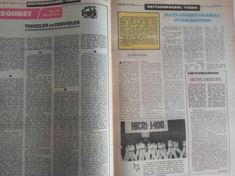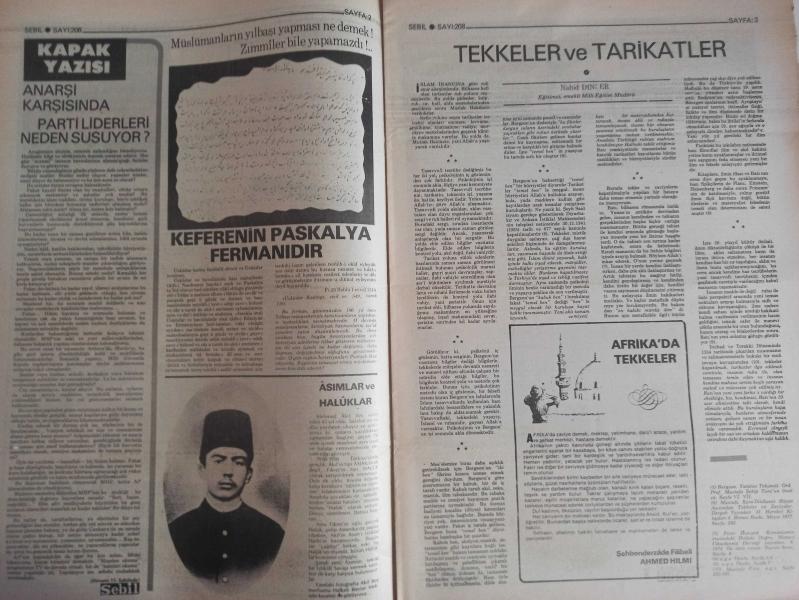 Sebil Haftalık Siyasi, Edebi, Tarihi, İlmi Gazetesi - 31 Aralık 1979 - Sayı:208 - Parti Liderleri Neden Susuyor? - Eritre Mücahidleri Kötü Kaderlerine Terk Edildiler - Tekkelerin Halk Terbiyesindeki Büyük Rolü - Anarşi Karşısında Parti Liderleri Neden Susuyor? - Keferenin Paskalya Fermanıdır - Tekkeler ve Tarikatler - Mecellenin Ana Kaideleri - Hicreti Yaşayanlar Hicret'i Anlatıyor - Sağlık ve Domuz Eti - Tıbbın Hükmü - Ölçülerimiz - Büyük Günahlar - Affettirebilmek - Dini Suallere Cevaplar - Bir Mübarek Sefer - Ahmed Abid - Mustafa Miyasoğlu - Tekkeler ve Dervişler - Suudi Arabistan Kralı İsyanı Bastırdı - Sedir Dergisi - Silaha Karşı İnanç ve İhlas - Hilmi Kurtuluş - Hatsan Atı Küfi Yazı - Mezar Taşları - Osmanlı Ruhunun Taş'a Akisleri - 999'u Veren 1000'i de Verir - Nasreddin Hoca Bir Gün - Küçük Kahraman - Zikir Nedir? - Çocuklarla Dost Sohbetleri - İslam Kadına Ne Getirdi? - Cahid Baltacı - Dilini Tutmak - Hicreti Yaşayanlar Hicret'i Anlatıyor - Eritre Müslümanları Kaderleri ile Başbaşa Bırakıldı fotoğraf ve haberi - Tam Takım Gazete Yıpranma, sararmalar, kupon kesiği ve yırtılmalar zamana bağlı olarak görülebilir