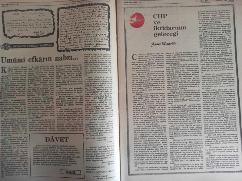 Sebil Haftalık Siyasi, Edebi, Tarihi, İlmi Gazetesi - 31 Mart 1978 - Sayı:118 - Selahaddin Eş'imizin Tahliye Edildiği Gün Müslüman Türkiye İsimli Eseri Toplatıldı! - Umumi Efkarın Nabzı - CHP ve İktidarının Geleceği - Kadir Mısıroğlu - Meçhul Kahramanlar - Lütfi Fikri Bey - Üçüncü Dünya'ya Değil, Kendi Dünyamıza - Osman Saraç - Esaret'ten Esaret'e Yahud Hürriyet'ten Hürriyet'e - Kitap Toplatma Hürriyeti - Anarşi veya DR. Moro'nun Adası - 19. Madde Değiştirilmeli - Yahudi Sığırtmaçlık Yapıyor - Firavun'un Gazabı - Sırası Geldikçe - Mehmed Süheyl - Hz. Peygamber'i Tanımak - Dini ve Vicdani Borç - Dil ve Edebiyat - Okuyucu Postası - Kur'an'ın Gölgesinde - Seyyid Kutub - Uhud - Alfabe Değişikliğinde Dış Türklerin Rolü - Mahalli Temsilcilerimiz - Dini, Laikliğin ve Anayasanın Aleti Yapanlar - ADESE - Mehmed Saffet fotoğraf ve haberi - Tam Takım Gazete, Kadir Mısıroğlu - Ramazan Güntay tarafından kaleme alınmıştır. Kitap 1978 yılında Milsan Basın Sanayi tarafından [İstanbul] yayınlanmıştır. 16 sayfadır. Sebil Haftalık Siyasi, Edebi, Tarihi, İlmi Gazetesi - 31 Mart 1978 - Sayı:118 - Selahaddin Eş'imizin Tahliye Edildiği Gün Müslüman Türkiye İsimli Eseri Toplatıldı! - Umumi Efkarın Nabzı - CHP ve İktidarının Geleceği - Kadir Mısıroğlu - Meçhul Kahramanlar - Lütfi Fikri Bey - Üçüncü Dünya'ya Değil, Kendi Dünyamıza - Osman Saraç - Esaret'ten Esaret'e Yahud Hürriyet'ten Hürriyet'e - Kitap Toplatma Hürriyeti - Anarşi veya DR. Moro'nun Adası - 19. Madde Değiştirilmeli - Yahudi Sığırtmaçlık Yapıyor - Firavun'un Gazabı - Sırası Geldikçe - Mehmed Süheyl - Hz. Peygamber'i Tanımak - Dini ve Vicdani Borç - Dil ve Edebiyat - Okuyucu Postası - Kur'an'ın Gölgesinde - Seyyid Kutub - Uhud - Alfabe Değişikliğinde Dış Türklerin Rolü - Mahalli Temsilcilerimiz - Dini, Laikliğin ve Anayasanın Aleti Yapanlar - ADESE - Mehmed Saffet fotoğraf ve haberi - Tam Takım Gazete adlı eser Türkçe dilindedir.