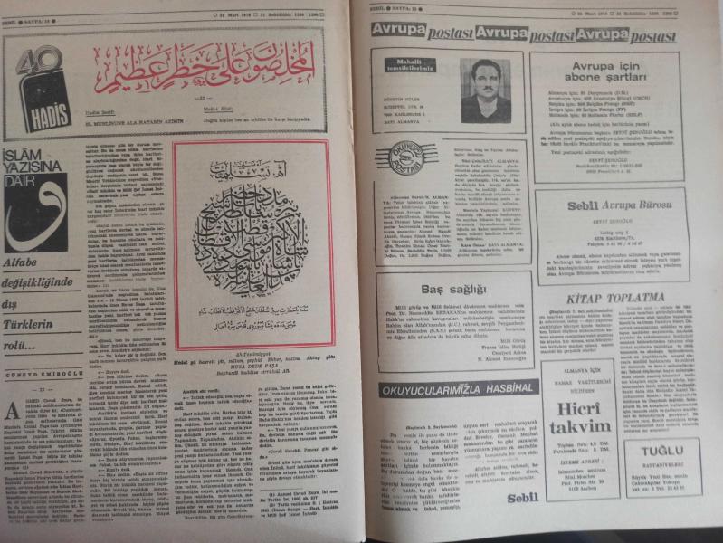 Sebil Haftalık Siyasi, Edebi, Tarihi, İlmi Gazetesi - 31 Mart 1978 - Sayı:118 - Selahaddin Eş'imizin Tahliye Edildiği Gün Müslüman Türkiye İsimli Eseri Toplatıldı! - Umumi Efkarın Nabzı - CHP ve İktidarının Geleceği - Kadir Mısıroğlu - Meçhul Kahramanlar - Lütfi Fikri Bey - Üçüncü Dünya'ya Değil, Kendi Dünyamıza - Osman Saraç - Esaret'ten Esaret'e Yahud Hürriyet'ten Hürriyet'e - Kitap Toplatma Hürriyeti - Anarşi veya DR. Moro'nun Adası - 19. Madde Değiştirilmeli - Yahudi Sığırtmaçlık Yapıyor - Firavun'un Gazabı - Sırası Geldikçe - Mehmed Süheyl - Hz. Peygamber'i Tanımak - Dini ve Vicdani Borç - Dil ve Edebiyat - Okuyucu Postası - Kur'an'ın Gölgesinde - Seyyid Kutub - Uhud - Alfabe Değişikliğinde Dış Türklerin Rolü - Mahalli Temsilcilerimiz - Dini, Laikliğin ve Anayasanın Aleti Yapanlar - ADESE - Mehmed Saffet fotoğraf ve haberi - Tam Takım Gazete Yıpranma, sararmalar, kupon kesiği ve yırtılmalar zamana bağlı olarak görülebilir