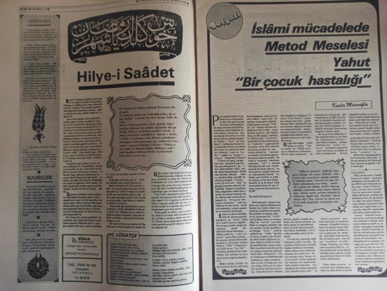 Sebil Haftalık Siyasi, Edebi, Tarihi, İlmi Gazetesi - 4 Ağustos 1978 - Ali Rıza Demircan-Sayı:136 - Ramazan'ı Şerif'in Ruhaniyetine Sığınarak Cenab-ı Hak'dan İstimdad Ediyoruz - Hoş Geldin Ya Şehr-i Ramazan - Hilye-i Saadet - İslami Mücadelede Metod Meselesi Yahut ''Bir, Çocuk Hastalığı'' - Kadir Mısıroğlu - Yakın Tarihimizde Meçhul Kahramanlar - Şeriatın Ramazan'ı Layıkları Alakadar Etmez! - Ali Şükrü Bey - Dediler Dedik Ki - Hakimler ve Mahkemeler - Selahaddin Eş Çakırgil - Bu Anayasamızla Hac'cı Engelleyemezsiniz! Dürüst Olunuz! - Anarşi Etrafında Açık Oturum - Asıl Ambargo Yeni - Başladı - Haftanın Mevzuu - Beşik Uleması - Sadık Özarslan - Ramazan - İslam'da Yabancı Ümmetlere Benzememek - Esma-ül Hüsna - Birinci Asya İslam Kongresi Çok Başarılı Geçti - İslam Aleminden - Okuyucu Postası - Hattat Kemal Batanay - Ramazan Güntay - Dovizle Sıra Beklemeden - Avrupa Postası - Yahudilerden mi İbret Alalım? fotoğraf ve haberi - Tam Takım Gazete, Kadir Mısıroğlu - Ramazan Güntay tarafından kaleme alınmıştır. Kitap 1978 yılında Milsan Basın Sanayi tarafından [İstanbul] yayınlanmıştır. 16 sayfadır. Sebil Haftalık Siyasi, Edebi, Tarihi, İlmi Gazetesi - 4 Ağustos 1978 - Ali Rıza Demircan-Sayı:136 - Ramazan'ı Şerif'in Ruhaniyetine Sığınarak Cenab-ı Hak'dan İstimdad Ediyoruz - Hoş Geldin Ya Şehr-i Ramazan - Hilye-i Saadet - İslami Mücadelede Metod Meselesi Yahut ''Bir, Çocuk Hastalığı'' - Kadir Mısıroğlu - Yakın Tarihimizde Meçhul Kahramanlar - Şeriatın Ramazan'ı Layıkları Alakadar Etmez! - Ali Şükrü Bey - Dediler Dedik Ki - Hakimler ve Mahkemeler - Selahaddin Eş Çakırgil - Bu Anayasamızla Hac'cı Engelleyemezsiniz! Dürüst Olunuz! - Anarşi Etrafında Açık Oturum - Asıl Ambargo Yeni - Başladı - Haftanın Mevzuu - Beşik Uleması - Sadık Özarslan - Ramazan - İslam'da Yabancı Ümmetlere Benzememek - Esma-ül Hüsna - Birinci Asya İslam Kongresi Çok Başarılı Geçti - İslam Aleminden - Okuyucu Postası - Hattat Kemal Batanay - Ramazan Güntay - Dovizle Sıra Beklemeden - Avrupa Postası - Yahudilerden mi İbret Alalım? fotoğraf ve haberi - Tam Takım Gazete adlı eser Türkçe dilindedir.