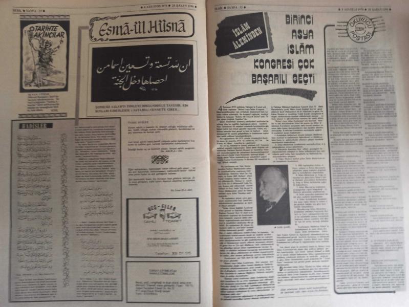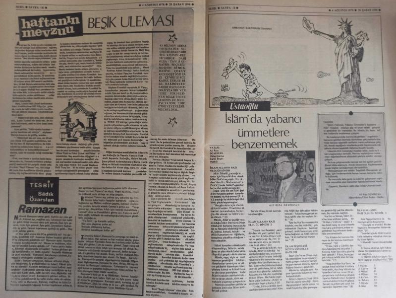 Sebil Haftalık Siyasi, Edebi, Tarihi, İlmi Gazetesi - 4 Ağustos 1978 - Sayı:136 - Ramazan'ı Şerif'in Ruhaniyetine Sığınarak Cenab-ı Hak'dan İstimdad Ediyoruz - Hoş Geldin Ya Şehr-i Ramazan - Hilye-i Saadet - İslami Mücadelede Metod Meselesi Yahut ''Bir, Çocuk Hastalığı'' - Kadir Mısıroğlu - Yakın Tarihimizde Meçhul Kahramanlar - Şeriatın Ramazan'ı Layıkları Alakadar Etmez! - Ali Şükrü Bey - Dediler Dedik Ki - Hakimler ve Mahkemeler - Selahaddin Eş Çakırgil - Bu Anayasamızla Hac'cı Engelleyemezsiniz! Dürüst Olunuz! - Anarşi Etrafında Açık Oturum - Asıl Ambargo Yeni - Başladı - Haftanın Mevzuu - Beşik Uleması - Sadık Özarslan - Ramazan - İslam'da Yabancı Ümmetlere Benzememek - Esma-ül Hüsna - Birinci Asya İslam Kongresi Çok Başarılı Geçti - İslam Aleminden - Okuyucu Postası - Hattat Kemal Batanay - Ramazan Güntay - Dovizle Sıra Beklemeden - Avrupa Postası - Yahudilerden mi İbret Alalım? fotoğraf ve haberi - Tam Takım Gazete Yıpranma, sararmalar, kupon kesiği ve yırtılmalar zamana bağlı olarak görülebilir