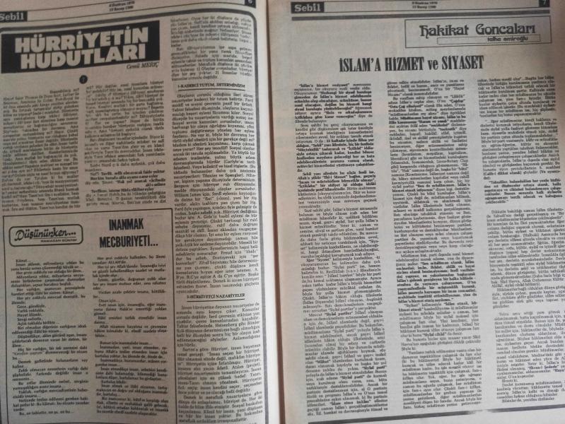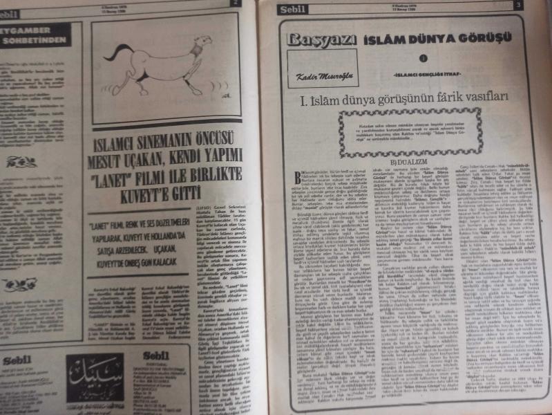 Sebil Haftalık Siyasi, Edebi, Tarihi, İlmi Gazetesi - 8 Haziran 1979 - Sayı:179 - Batıldan Gelen Hayır Getirmez! - İslamcı Sinemanın Öncüsü Mesut Uçakan, Kendi Yapımı ''Lanet'' Filmi ile Birlikte Kuveyt'e Gitti - İslam Dünya Görüşü - Kadir Mısıroğlu - Yakın Tarihimizde Meçhul Kahramanlar - Deli Halid Paşa - Mustafa Yazgan - Ruh ve Ceset - Nefileri Okşamak - Sadık Albayrak - Hürriyetin Hudutları - Cemil Meriç - İnanmak Mecburiyeti - İslam'a Hizmet ve Siyaset - Talha Emiroğlu - Müslüman Türk'ün Hac İbadetine Mani Olunmak İsteniyor! - Cami Önünde İmamlara Tecavüze Cüret Ediliyor - Recep Arslan - Toplu İğnesi Başı ve U-2'ler - İslam'ın Tebliğ Edilmesinde Temel Umdeler - Adalet ve İhsan - Kadın: Tahsil İş Aşk ve Aile - Mücahideler Sizler İçin - Romantizm Realizm - Esma-ül Hüsna - Hadislerin Işığında - Kin Duvarları - Balık Özarslan fotoğraf ve haberi - Tam Takım Gazete, Kadir Mısıroğlu - Ramazan Güntay tarafından kaleme alınmıştır. Kitap 1979 yılında Milsan Basın Sanayi tarafından [İstanbul] yayınlanmıştır. 16 sayfadır. Sebil Haftalık Siyasi, Edebi, Tarihi, İlmi Gazetesi - 8 Haziran 1979 - Sayı:179 - Batıldan Gelen Hayır Getirmez! - İslamcı Sinemanın Öncüsü Mesut Uçakan, Kendi Yapımı ''Lanet'' Filmi ile Birlikte Kuveyt'e Gitti - İslam Dünya Görüşü - Kadir Mısıroğlu - Yakın Tarihimizde Meçhul Kahramanlar - Deli Halid Paşa - Mustafa Yazgan - Ruh ve Ceset - Nefileri Okşamak - Sadık Albayrak - Hürriyetin Hudutları - Cemil Meriç - İnanmak Mecburiyeti - İslam'a Hizmet ve Siyaset - Talha Emiroğlu - Müslüman Türk'ün Hac İbadetine Mani Olunmak İsteniyor! - Cami Önünde İmamlara Tecavüze Cüret Ediliyor - Recep Arslan - Toplu İğnesi Başı ve U-2'ler - İslam'ın Tebliğ Edilmesinde Temel Umdeler - Adalet ve İhsan - Kadın: Tahsil İş Aşk ve Aile - Mücahideler Sizler İçin - Romantizm Realizm - Esma-ül Hüsna - Hadislerin Işığında - Kin Duvarları - Balık Özarslan fotoğraf ve haberi - Tam Takım Gazete adlı eser Türkçe dilindedir.