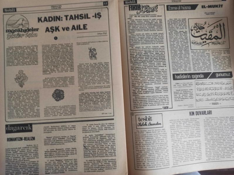 Sebil Haftalık Siyasi, Edebi, Tarihi, İlmi Gazetesi - 8 Haziran 1979 - Sayı:179 - Batıldan Gelen Hayır Getirmez! - İslamcı Sinemanın Öncüsü Mesut Uçakan, Kendi Yapımı ''Lanet'' Filmi ile Birlikte Kuveyt'e Gitti - İslam Dünya Görüşü - Kadir Mısıroğlu - Yakın Tarihimizde Meçhul Kahramanlar - Deli Halid Paşa - Mustafa Yazgan - Ruh ve Ceset - Nefileri Okşamak - Sadık Albayrak - Hürriyetin Hudutları - Cemil Meriç - İnanmak Mecburiyeti - İslam'a Hizmet ve Siyaset - Talha Emiroğlu - Müslüman Türk'ün Hac İbadetine Mani Olunmak İsteniyor! - Cami Önünde İmamlara Tecavüze Cüret Ediliyor - Recep Arslan - Toplu İğnesi Başı ve U-2'ler - İslam'ın Tebliğ Edilmesinde Temel Umdeler - Adalet ve İhsan - Kadın: Tahsil İş Aşk ve Aile - Mücahideler Sizler İçin - Romantizm Realizm - Esma-ül Hüsna - Hadislerin Işığında - Kin Duvarları - Balık Özarslan fotoğraf ve haberi - Tam Takım Gazete adlı eser, Kitap > Süreli Yayınlar > Gazeteler > Türkiye > Genel > Haftalık kategorisinde İkinci El olarak satıştadır.
