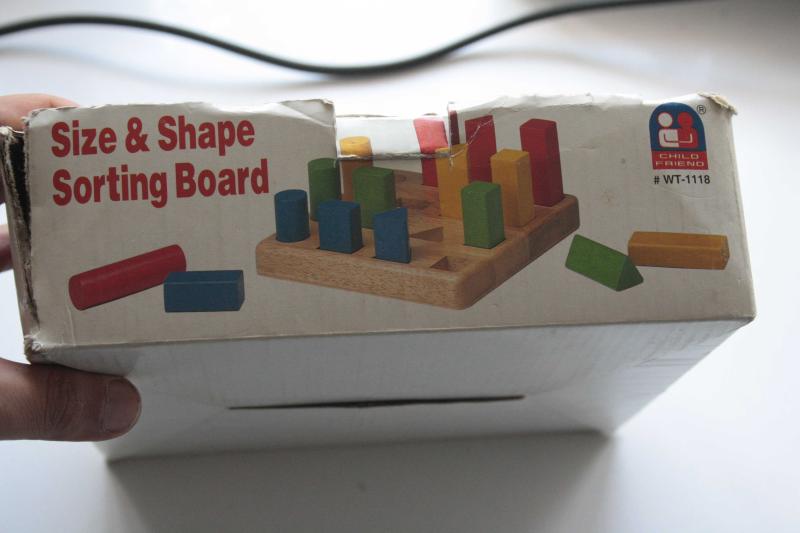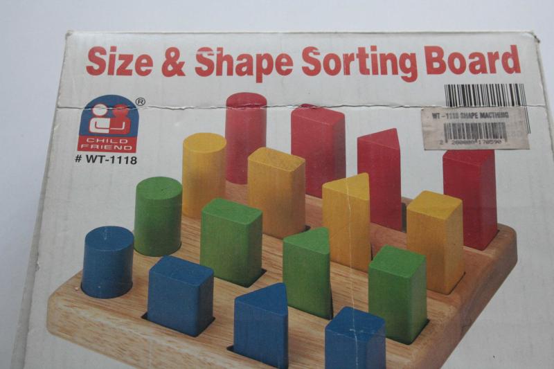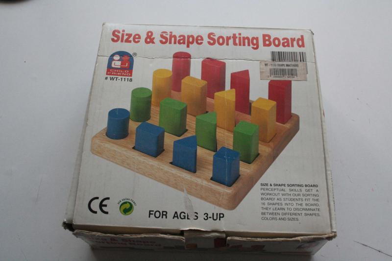 Şekil ve Boyut Ayırma Panosu ÖĞRETİCİ EĞİTİCİ COCUKLAR İÇİN (YENİ RAF başlıklı antika/koleksiyon objesi Avrupa menşe’lidir. 1950-1999 arası dönemine aittir.