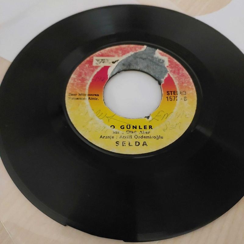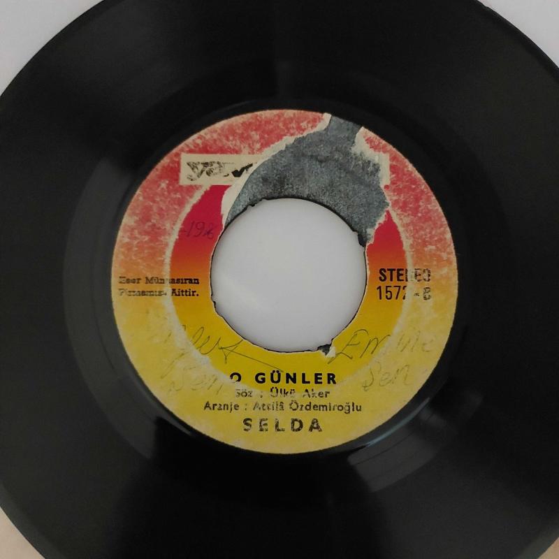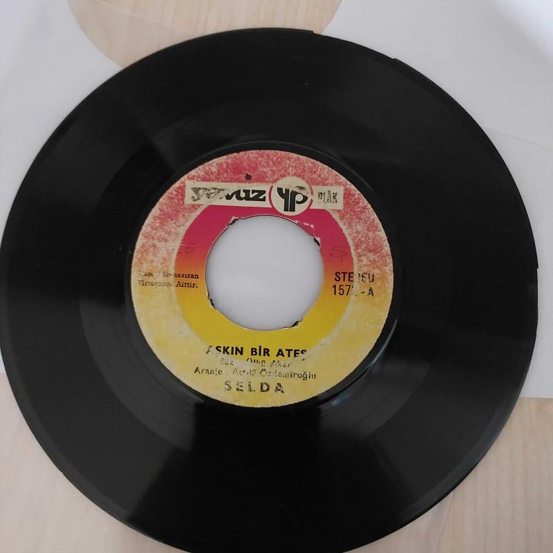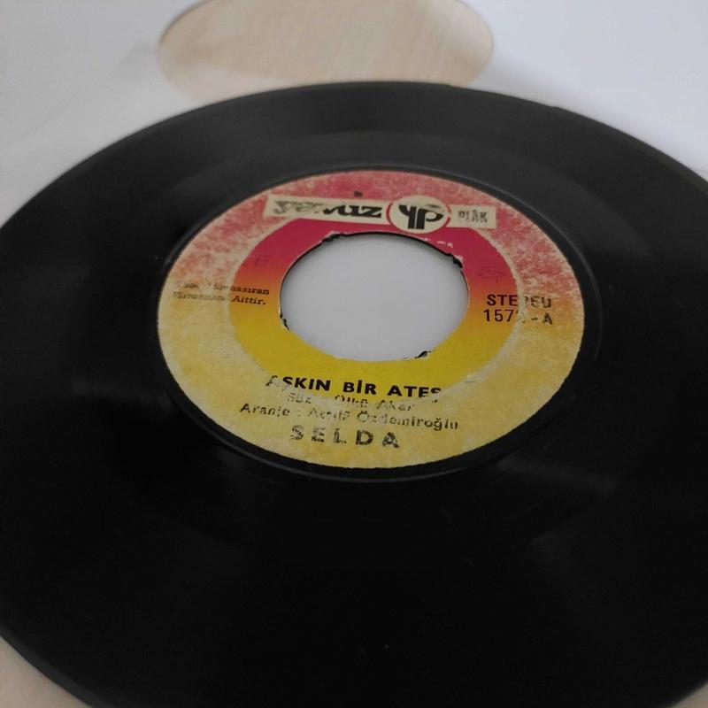 Selda bağcan 1975 yavuz plakçılıktan çıkan güzel bir 45 liği bir yüzü o günler bir yüzü aşkın bir ateş resimlerde de görüldüğü gibi plağın orta göbeğinde soyulmalar mevcut ve kondüsyon 7 dir çanta pikaplar için daha uygundur çıtırtılı çalmaktadır