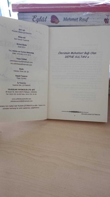 Mustafa Çelebi Çetinkaya imzalı baskı İlk baskı: Ocak 2011 Yayınevi: Yıldızlar Yayıncılık (Ankara) İçindekiler: Aşk–özlem temalı şiirler, kitabın başında “Ömrümün Muhabbet Bağı Olan DEFNE SULTAN’a” adanmış uzun bir önsöz var.