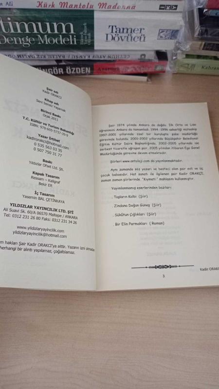 Kadir Orakçı imzalı baskı İlk baskı: Ocak 2011 Yayınevi: Yıldızlar Yayıncılık (Ankara) İçindekiler: Yine aşk ve ayrılık temalı şiirler; şairin hayat hikâyesine ve yayımlanmamış diğer eserlerine ilişkin kısa bir biyografi bölümü mevcut.